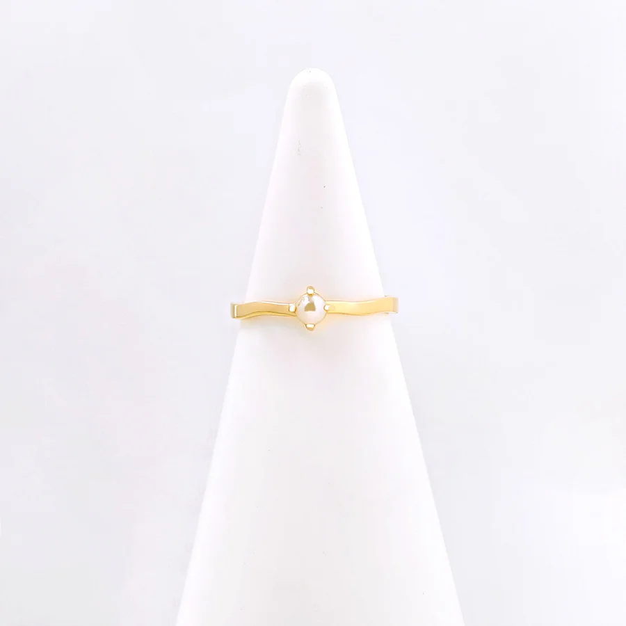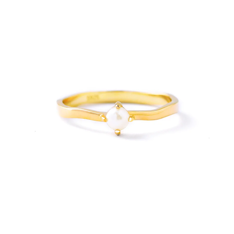 A timeless fusion of sophistication and charm. This delicate piece is crafted with care, featuring a lustrous freshwater pearl nestled gracefully in a sterling silver band with a radiant gold finish.